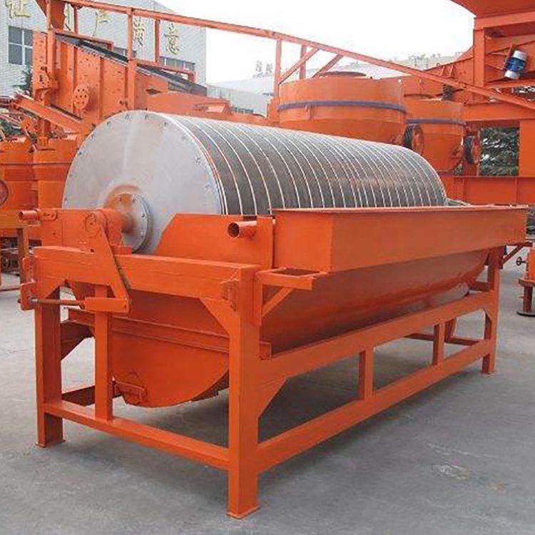 永磁筒式磁選機(jī)的應(yīng)用范圍:適用于粒度3mm以下的磁黃鐵礦、磁鐵礦、焙燒礦、鈦鐵礦等物料的濕式磁選,也用于煤、非金屬礦、建材等物料的除鐵作業(yè)。磁選機(jī)的磁系采用優(yōu)質(zhì)的鐵氧體材料(或與稀土磁鋼復(fù)合而成),筒表平均磁感應(yīng)強(qiáng)度為100~600 MT。磁選機(jī)具有結(jié)構(gòu)簡(jiǎn)單、處理量大、操作方便、易于維護(hù)等優(yōu)點(diǎn).